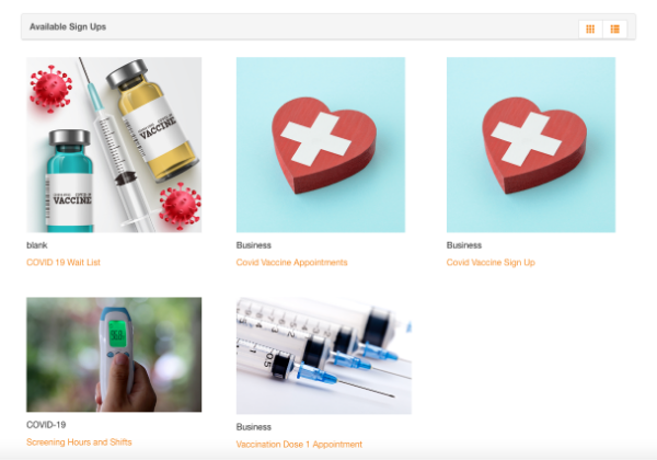 SignUpGenius is the leading online sign up software site used by millions to organize not only COVID-19 vaccine sign ups, but any event or occasion that requires people to sign up. Since each organization chooses how to publicize their sign up, it's generally best to contact them if you are unable to locate the sign up.