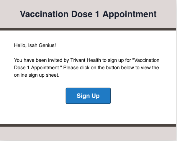Each organization chooses how to publicize their sign ups. Some organizations, like health departments, pharmacies or grocery stores, will post their sign ups on the company website. If so, you may be able to locate the sign up on those websites. At other times, they will email a sign up invitation to specific individuals.